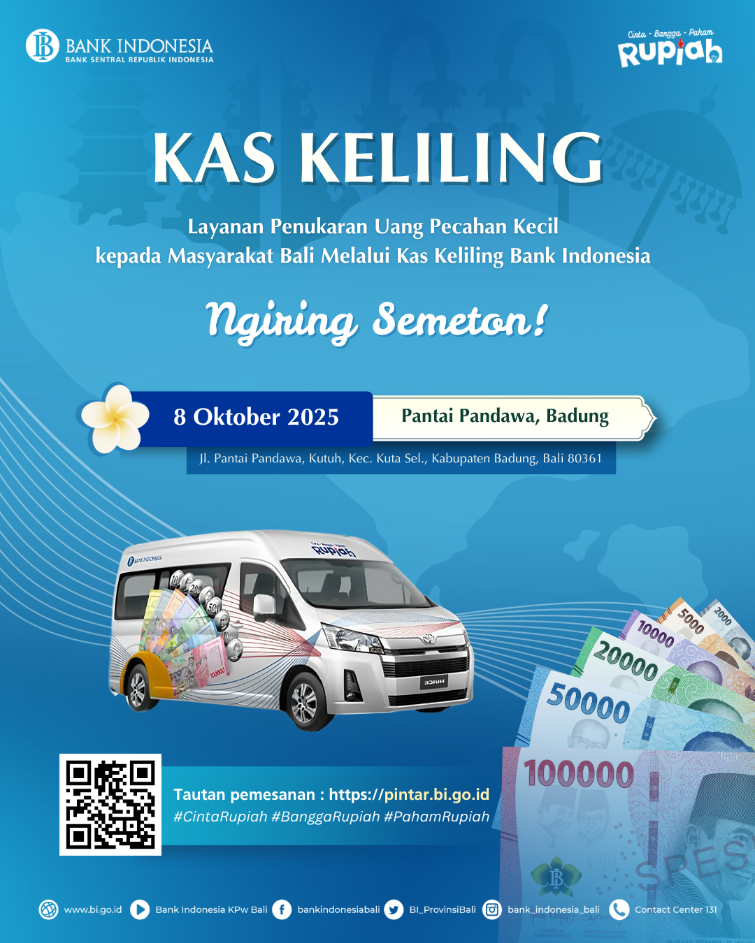 Kas Keliling Bank Indonesia kembali hadir! Jangan lupa tukarkan uang pecahan kecilmu lewat layanan Kas Keliling Bl ya! Yuk, tukar uang dengan mudah, resmi, dan aman!